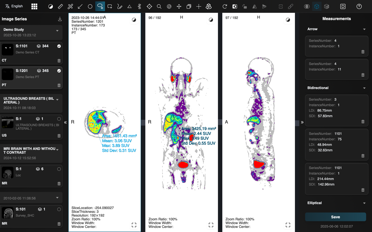 Precise Measurement and Marking: Provides convenient measurement and annotation tools, enabling you to make accurate markings and measurements on images, supporting professional medical analysis needs. Whether you are a medical professional or a researcher, this software will become an indispensable tool for you.